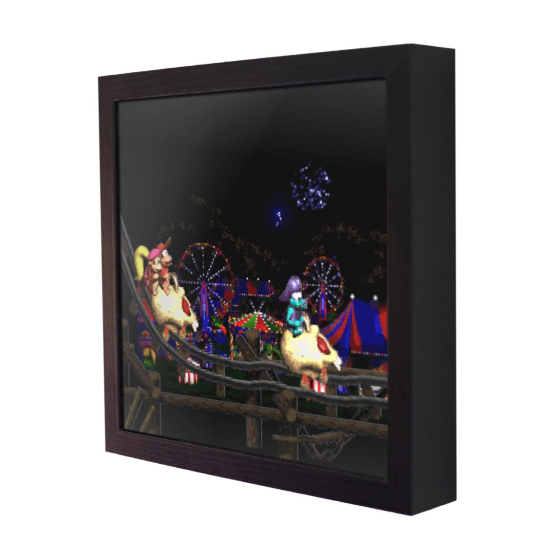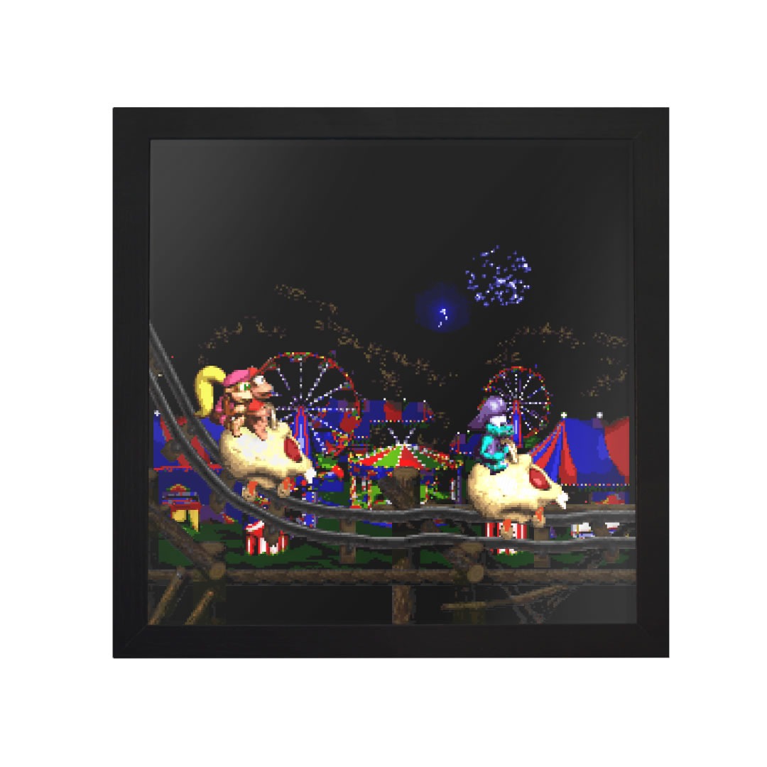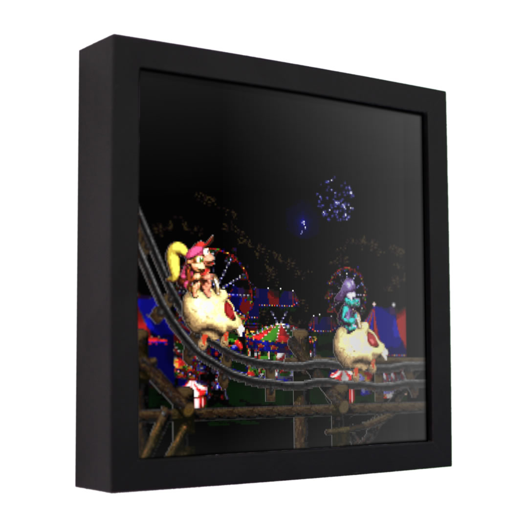 I bought this as a Christmas gift for my boyfriend. We were SUPER surprised when we realized we had both bought a shadow box from you, for the other. (Not to mention we both had 0 idea what the other was getting lol) He got the one with Kackle and I got this one. DKC2 is a very special game for the both of us because it’s something we played while getting to know each other, it was a very sentimental piece because of that and we are both sooo happy with our products. Thank you.