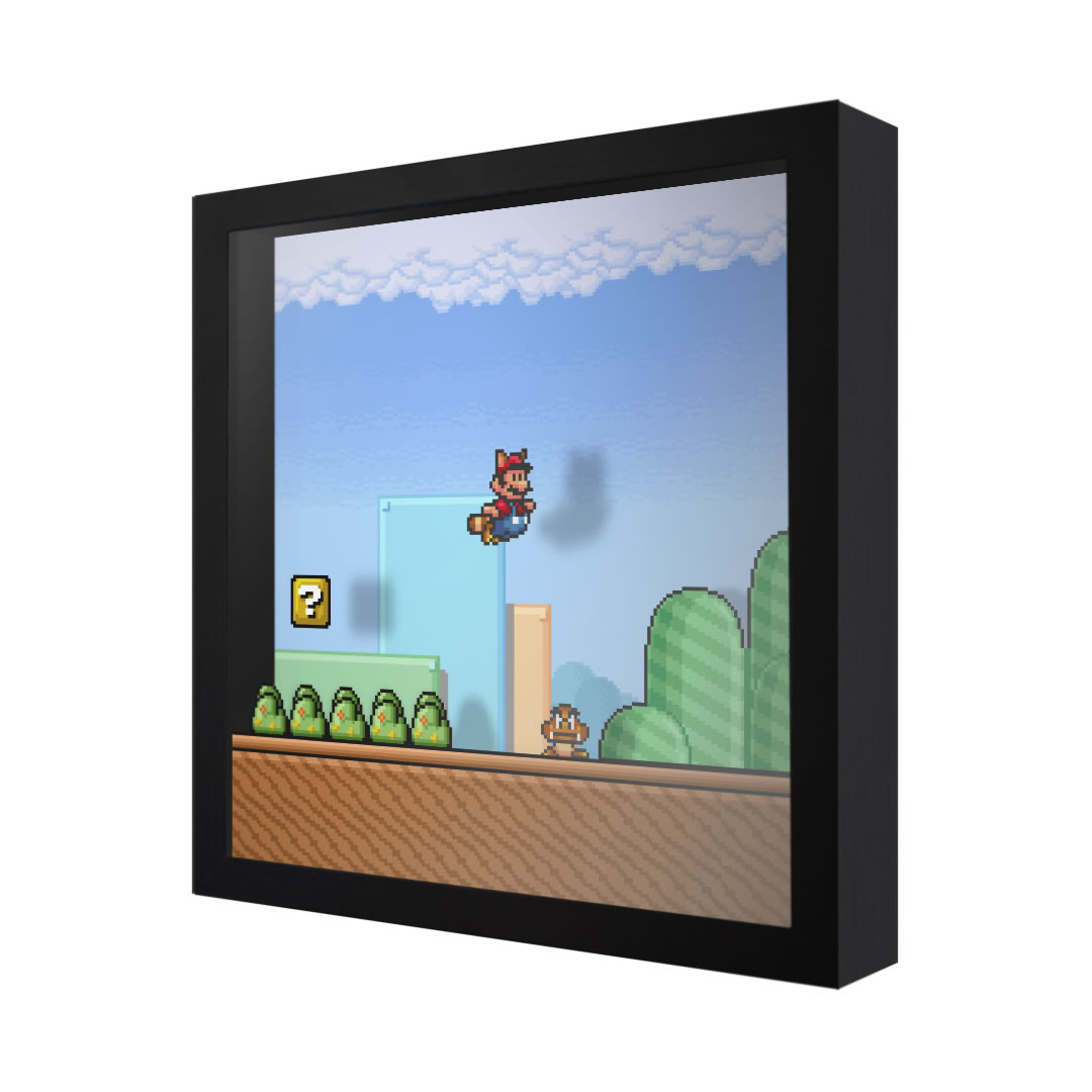 | Our 3D shadow box frames are hand-crafted using multiple layers of artwork to create real depth and dimension, making classic and modern video games feel alive on your wall or desk. Each piece is printed on high-quality photo paper, assembled inside a durable shadow box frame, and arrives fully ready to hang. A perfect addition to a gaming room and an amazing gift for any gamer, collector, or fan of video game art. |