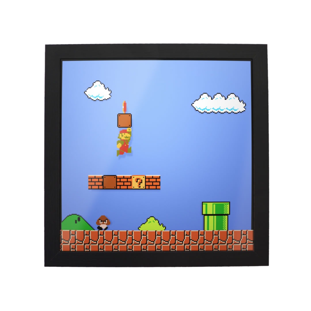 | Our 3D shadow box frames are hand-crafted using multiple layers of artwork to create real depth and dimension, making classic and modern video games feel alive on your wall or desk. Each piece is printed on high-quality photo paper, assembled inside a durable shadow box frame, and arrives fully ready to hang. A perfect addition to a gaming room and an amazing gift for any gamer, collector, or fan of video game art. |